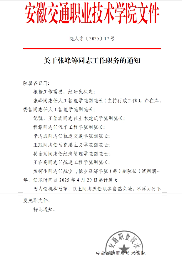?關于張峰等同志工作職務的通知