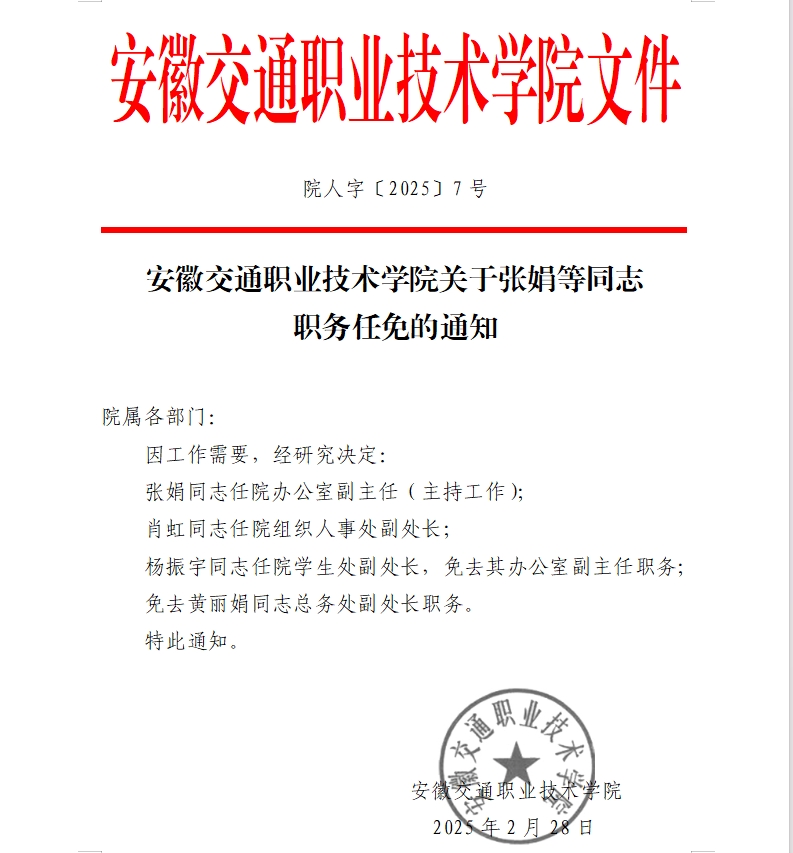 下一條:中共安徽交通職業(yè)技術(shù)學(xué)院委員會(huì)關(guān)于張娟等同志職務(wù)任免的通知