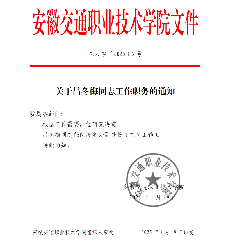 關于呂冬梅同志工作職務的通知