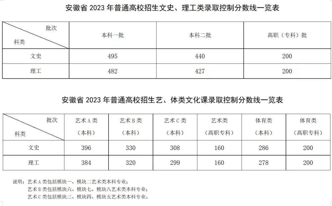 2022年專科普通批次(安徽)錄取分?jǐn)?shù)線為: