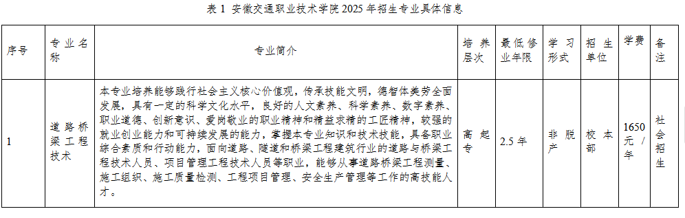 學校設有土木建筑學院、汽車工程學院、軌道交通學院、經濟管理學院、馬克思主義學院、航運工程學院、航空與低空經濟學院、人工智能學院和成人教育部。現有全日制在校生超過11000人,2025年招生備案專業38個,覆蓋交通運輸、土木建筑、裝備制造等8個專業大類17個專業類學校師資力量雄厚。我校高等學歷繼續教育于1999年開始招生,學校設有目前已畢業學生近萬人,專升本開設的專業主要有:道路橋梁與渡河工程、汽車服務工程、交通工程(城市軌道交通方向);高起專科開設的專業主要有:道路與橋梁工程技術,2022年我校已加入安徽繼續教育網絡園區。